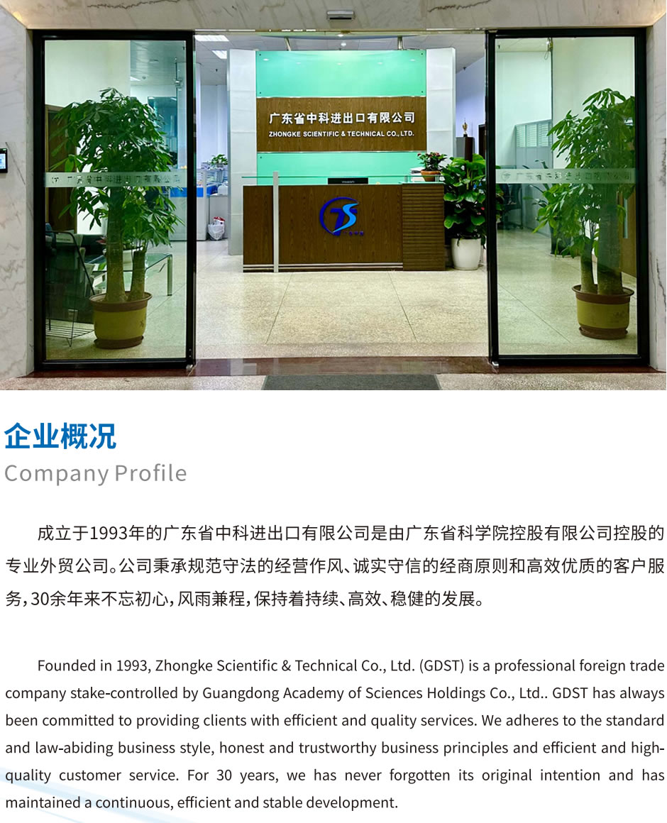 廣東省中科進(jìn)出口有限公司 地址:廣東省廣州市先烈中路100號(hào)科學(xué)院9號(hào)一樓 電話:+86(0)20-3765 6268 傳真:+86(0)20-8768 2371 +86(0)20-8768 1505 網(wǎng)址:http://hzgiraffe.com.cn 郵箱:shengz_k@gdstie.com 郵編:510070