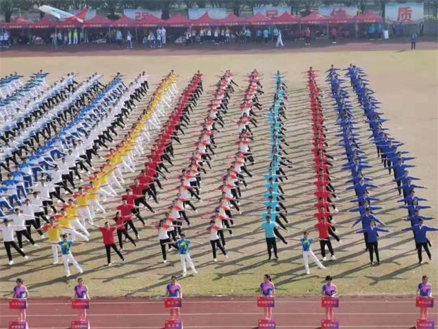 同時,為紀(jì)念新中國廣播體操頒布68周年,千人參與第九套廣播體操展示,動作協(xié)調(diào)、精神飽滿。