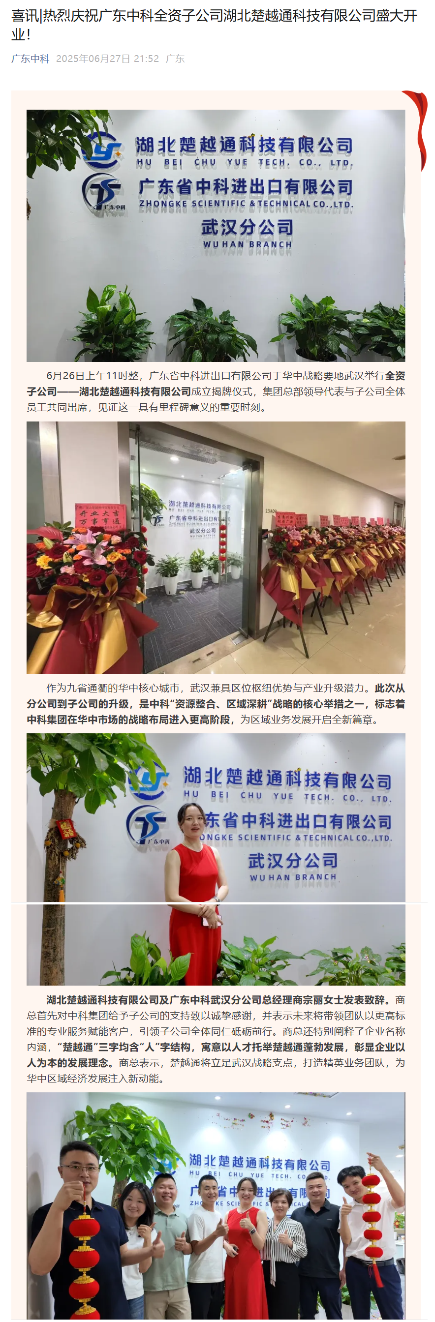 喜訊|熱烈慶祝廣東中科全資子公司湖北楚越通科技有限公司盛大開業(yè)!